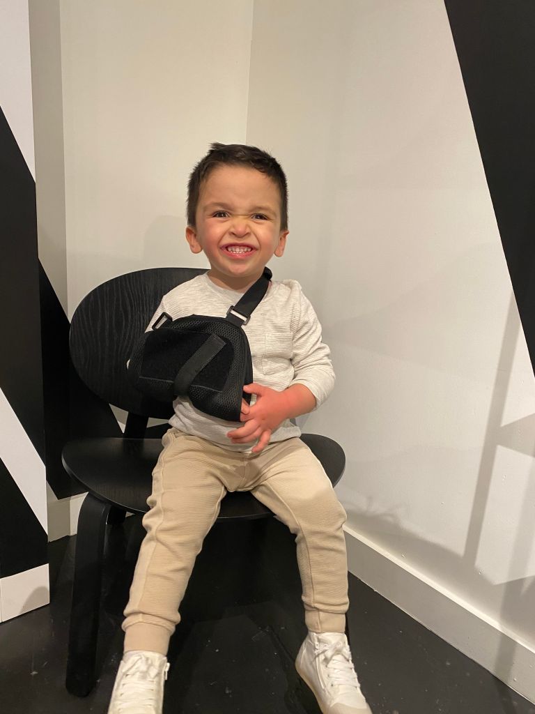 2021 rolled around and boy did George know how to ring in the New Year, we were all at home hanging out and Rich was lying down on the bed. George decided to jump on Rich’s back and lost his balance. George fell off the bed and I heard him cry like never before. He has always had a pretty weak and soft cry, but we did not know whether it was the shock of him falling or whether he was in pain. We put him in bed and gave him Tylenol. George is a pretty active kid, so the only way we could get him to lay in bed to rest was by letting him watch some TV. After two hours, I went in to get him ready for bed and he really struggled. I could tell it hurt him to move his arm above a certain point, so getting dressed was not even an option. It was January and COVID was very much still around and we were not vaccinated at this point, so Richard decided there was no way I was stepping foot into the hospital if I didn’t need to. My mom went with them and after an X-ray, the doctor told us that George had a broken clavicle and that it would take 4-6 weeks for him to heal. He was sent home with a sling, which of course did not look at all comfortable for him. The next day I went out to the pharmacy and did some modifications to his new sling. I let him sleep with us for a few days until we felt he was okay to sleep on his own. We had to limit his activity, which was a task in itself because as I said, George is very active. After 4 weeks, we visited the orthopedic, and he confirmed that George was fully healed!