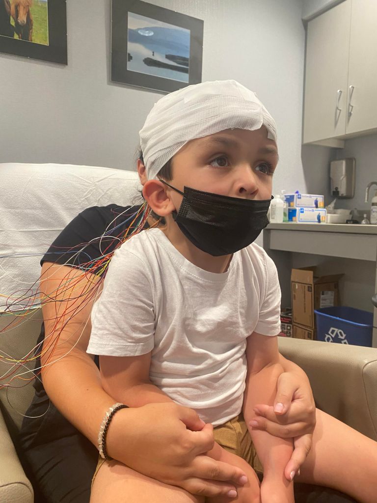 We did the 48 hour in home EEG in October. We took George in on a Friday afternoon to get all the equipment put on. He would had over 25 leads on his head and he would have to wear a backpack for 48 hours, even while sleeping. In addition, we would have to set up cameras in the two rooms where he spends most of his time, so that they can see whether George has any physical tics when and if he has absent seizures. I cannot tell you how nerve racking it was having him at home and watching his every move, and making sure that Jack did not pull any of the leads. I stepped out for a few minutes and I get a call from Richard to say that George pulled a few off. Oh my goodness! He told my mom to take the bandage off his head and quickly called the company, they were trying so hard to get the leads back into place. If enough leads came off, this means the test would need to end because they would not have a good read. The company confirmed that everything looked good. We were counting down the minutes to take all the equipment off and go out for some fresh air. George completed the 48 hours! A few days later, we get the call from the neurologist with the results. She tells us that George has extremely rapid brain activity and very often he has 1-2 second misfires, which means that he could be at high risk for seizures. Our first question was, “Is there anything that you can see from the video that correlates with when the misfires are happening?” We wondered whether it was him getting excited, watching TV, sleeping could provoke these misfires. She had us schedule an appointment with her to discuss next steps.